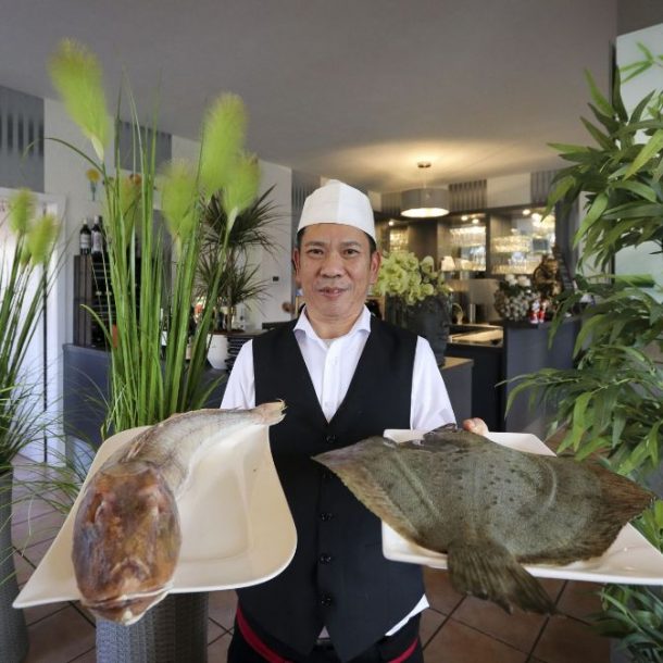 Bei uns bekommen Sie ausschließlich Fische aus natürlicher Umgebung. Wir möchten keine Medikamente im Fisch und bieten deshalb nur Fische aus Wildfang an. Wir haben für Sie Seeteufel, Dorade, Steinbutt, Wolfsbarsch, Austern, Jacobsmuscheln oder Hummer.